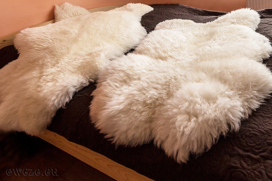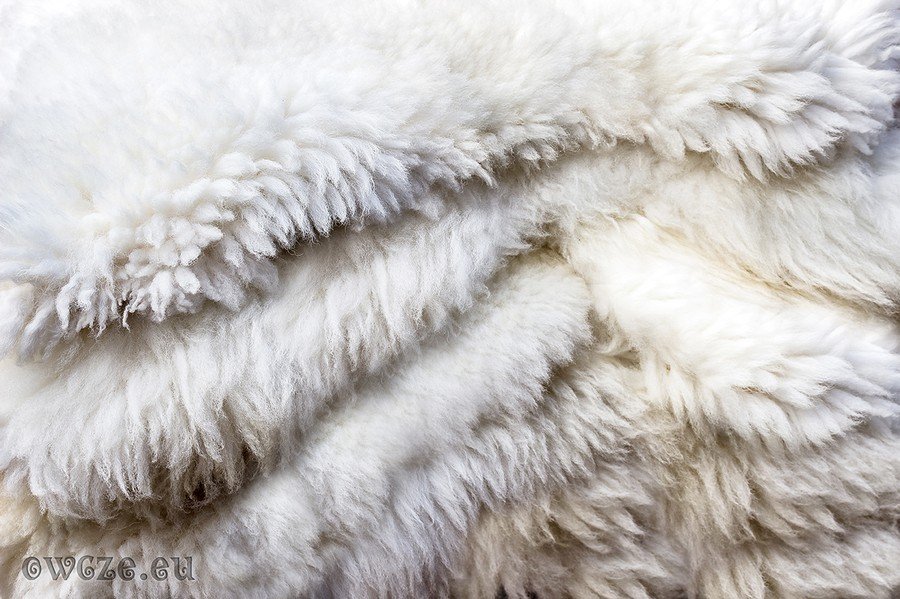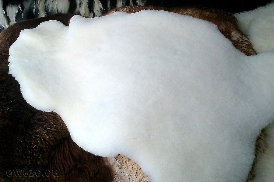 Skóry o naturalnym, kremowo - białym zabarwieniu. Występują w różnych odcieniach, długości włosa i kształcie. Wielkość skóry i długość włosia zależy od wieku i czasu strzyżenia owcy. Długość włosa może być też dostosowana do indywidualnych wymagań klienta.